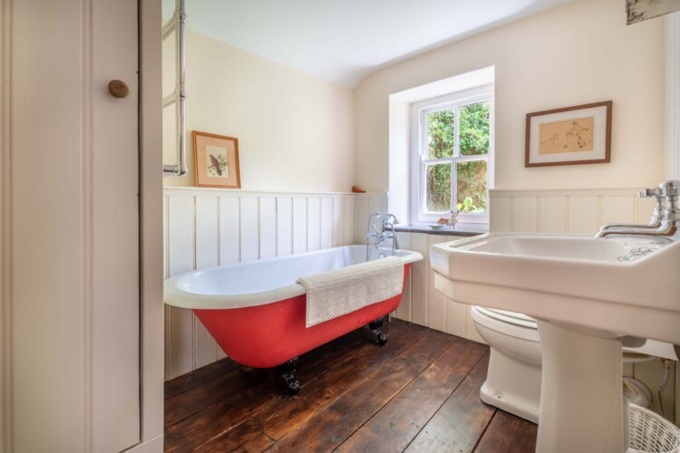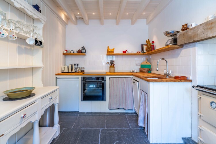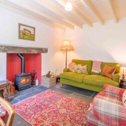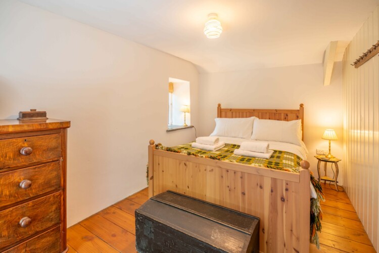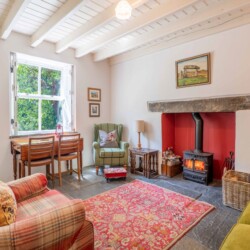 Inside, the cottage is simple and soulful – two cosy bedrooms overlooking the garden, a welcoming kitchen with a wood-burning Rayburn, and a snug lounge where you can read, nap, or stream your favourite series thanks to superfast WiFi. The bathroom features a classic roll-top bath, ideal after a bracing dip in the sea or a ramble through Cilgerran Gorge. Everywhere you look, there’s attention to detail, warmth, and a sense of place.