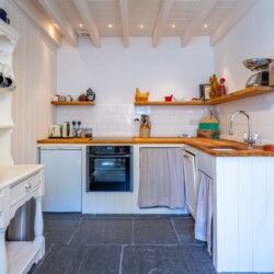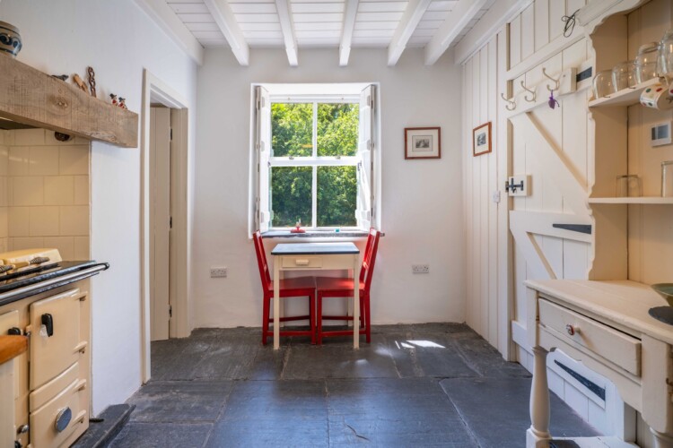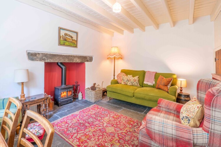 Painstakingly restored with great care, the cottage blends old-world character with modern comfort: think original slate floors (dug from the garden and now warmed by underfloor heating), thick stone walls, a wood-burning stove, and an atmosphere that wraps around you like a favourite blanket.